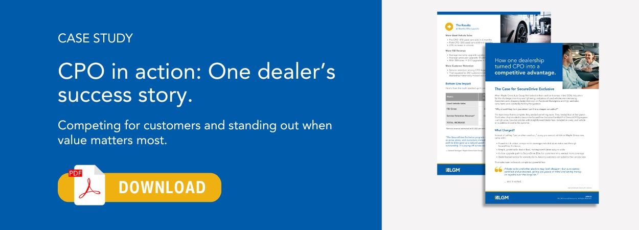 Here’s another advantage: a CPO warranty keeps the conversation going after the sale. When buyers return for warranty work or scheduled maintenance, it strengthens their relationship with the dealership. That means more service revenue, higher loyalty, and a better chance they’ll come back when it’s time for their next vehicle.